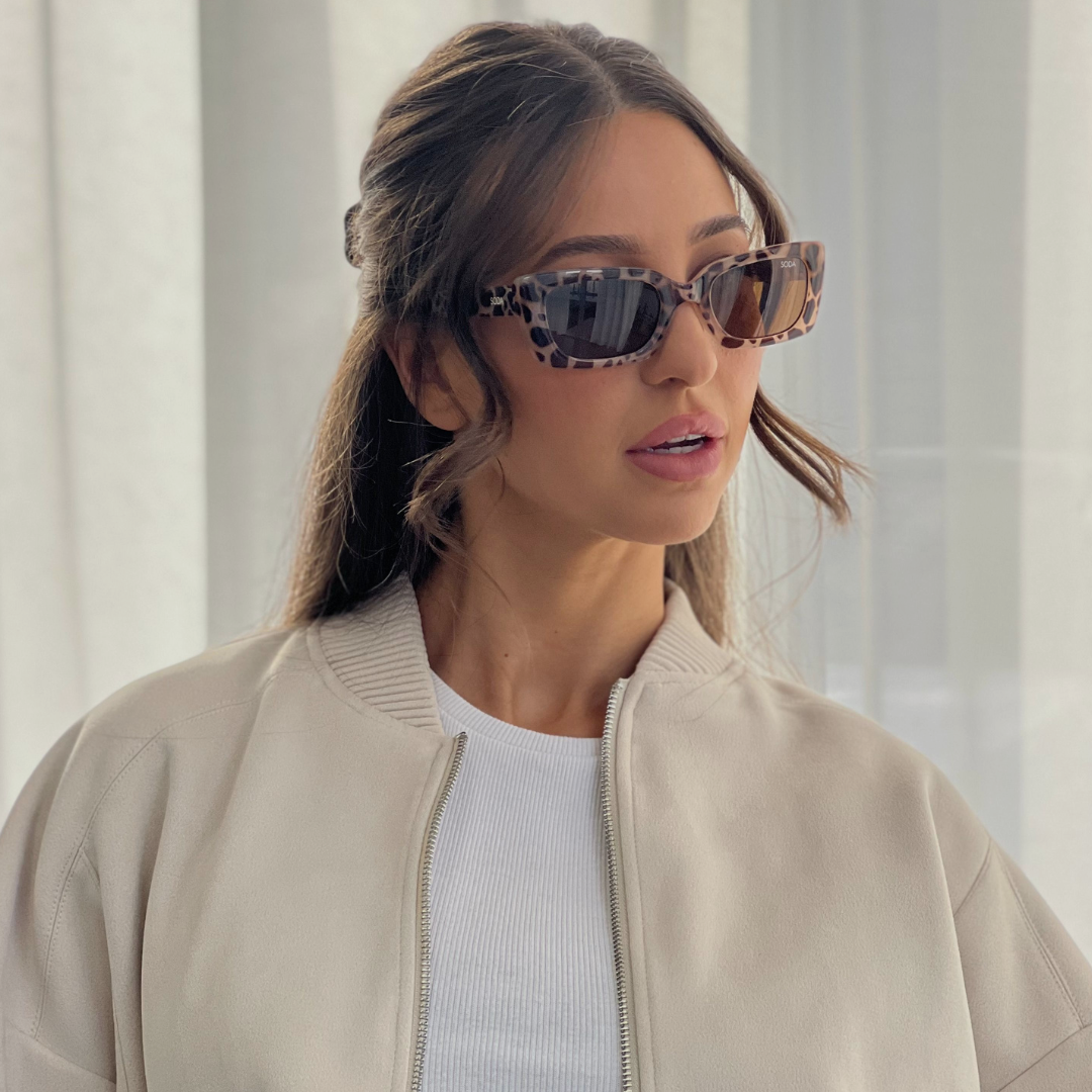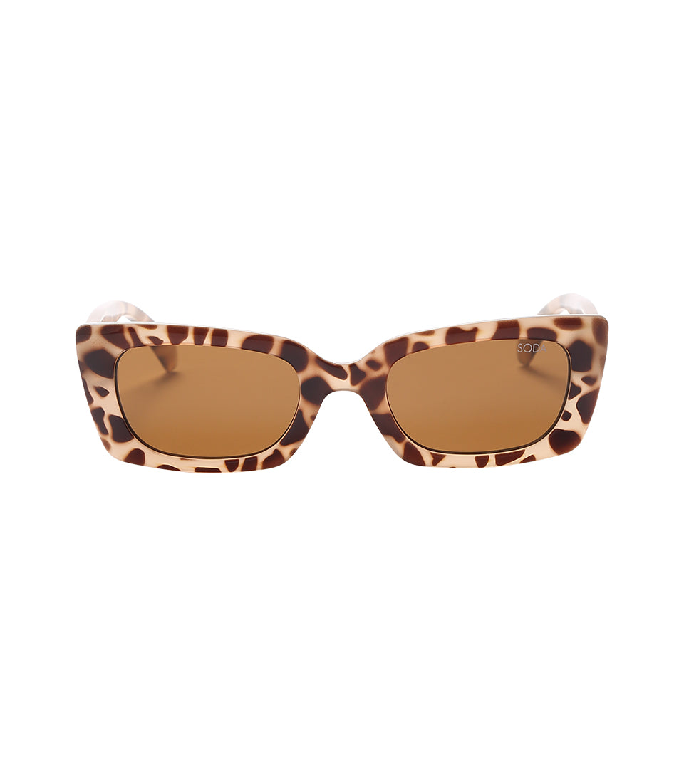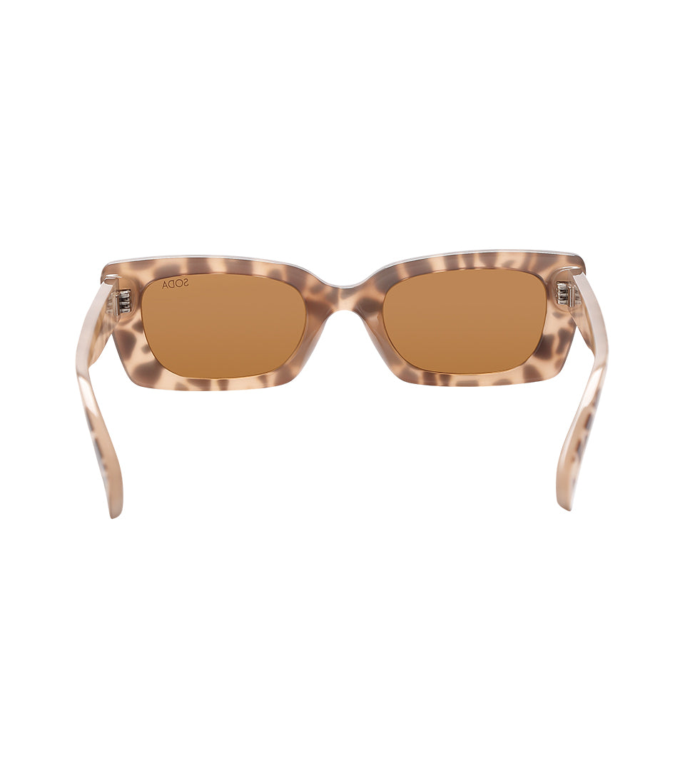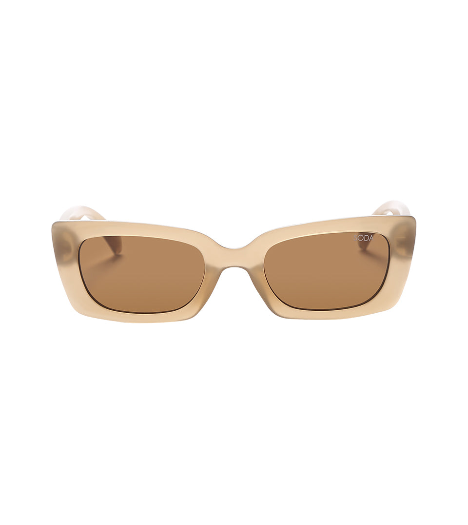 A timelessly cool pair of SODA sunglasses featuring a rectangular silhouette. Pared down with an upswept twist, this frame flatters everyone. The re-edition of this silhouette is slightly curved and ultra fabulous. Crafted using bio material and finished with polarized lenses to cut out glare.